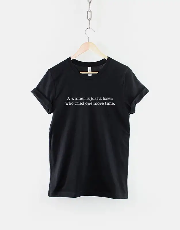 This “A Winner is Just a Loser Who Tried One More Time” shirt is made of premium quality ring spun cotton for a great quality soft feel, and comfortable retail fit. Our soft textile print will not crack or fade which ensures long-lasting print quality so your garment stays looking fantastic.